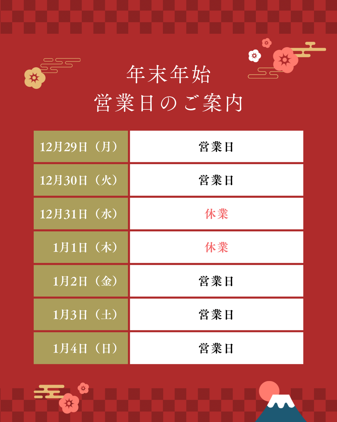 【年末年始 営業日程】